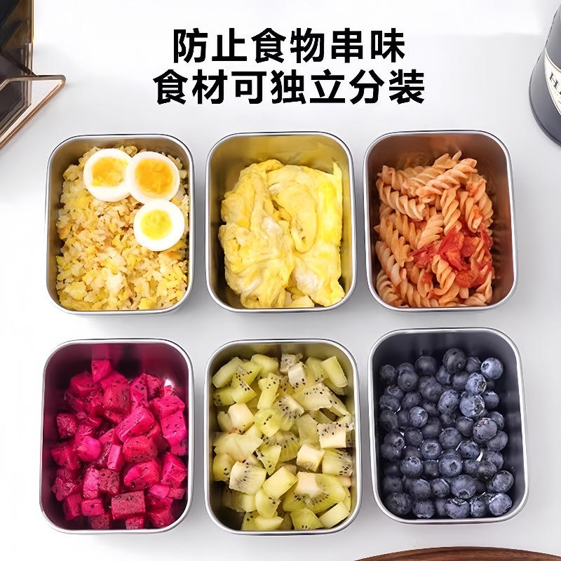 Contenedor de Almacenamiento de Alimentos con Tapa Cuadrada Sellada de Acero Inoxidable de Grado Alimenticio 316, para Uso Doméstico en Refrigerador y Viajes
