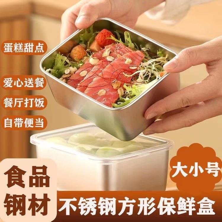 Stainless Steel Food Storage Container Rectangle Clip On Lid Camping Meal Box Solid Color 201 Small Size