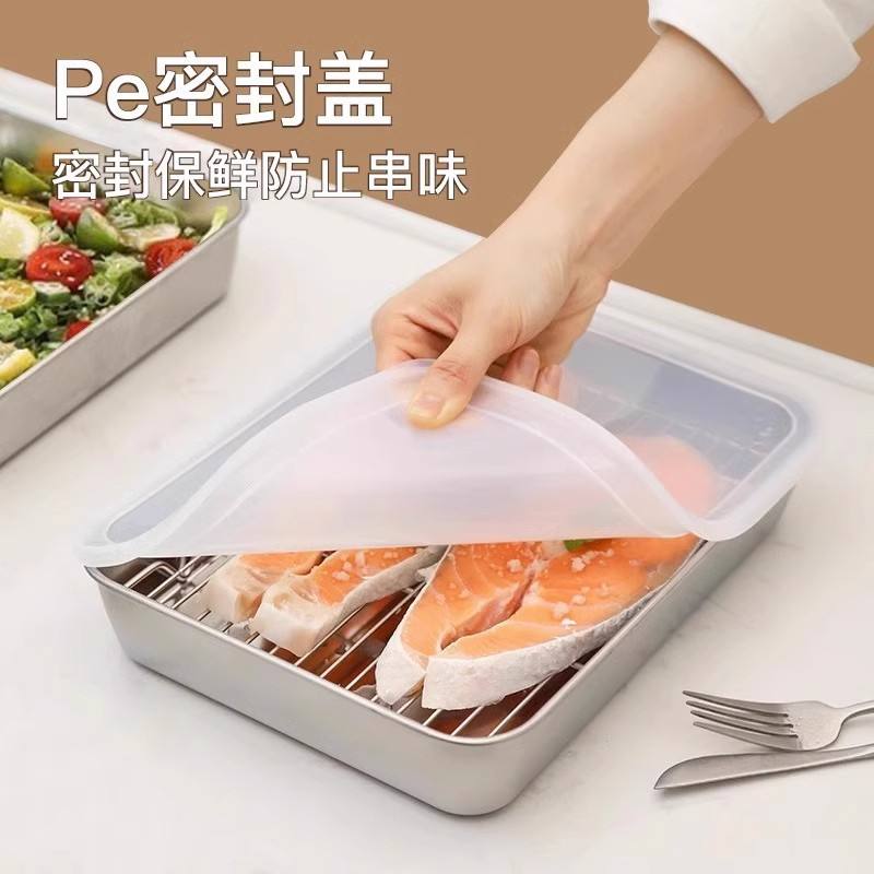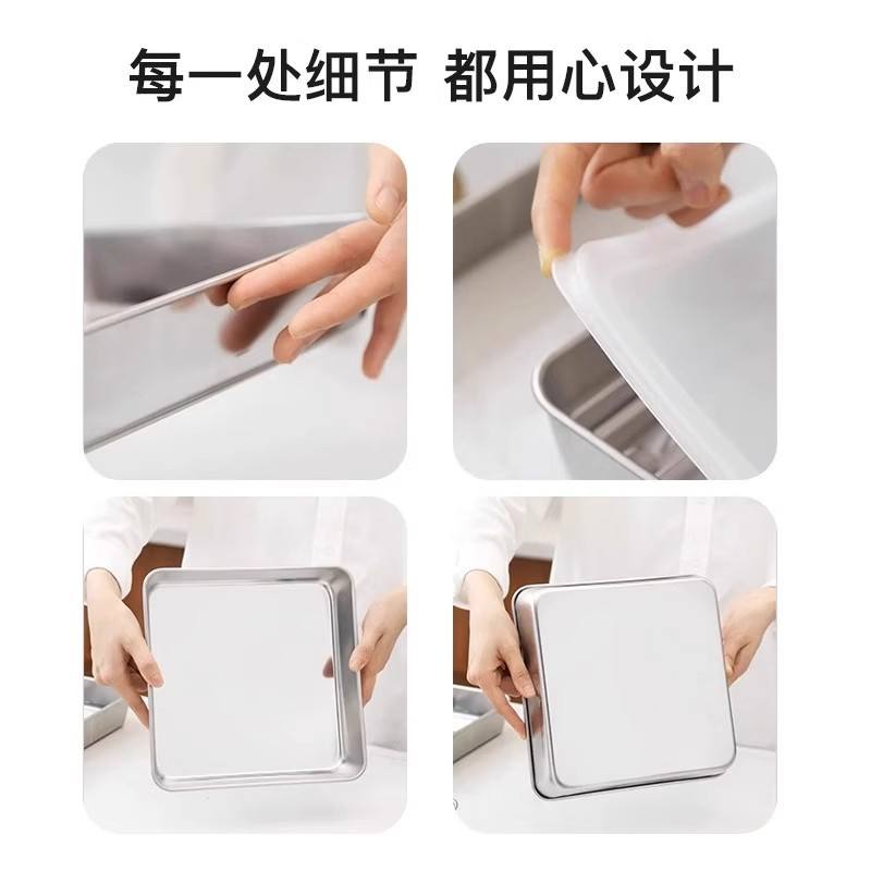Contenedor de almacenamiento de alimentos de acero inoxidable, plato cuadrado 304 para almacenamiento en refrigerador, bandeja de servicio multifuncional