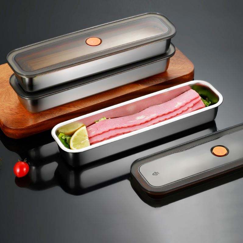 Caja de Acero Inoxidable para Mantener la Frescura con Tapa y Bandeja para Tocino, Apta para Almacenar Carne, Frutas, Verduras y Productos para el Desayuno