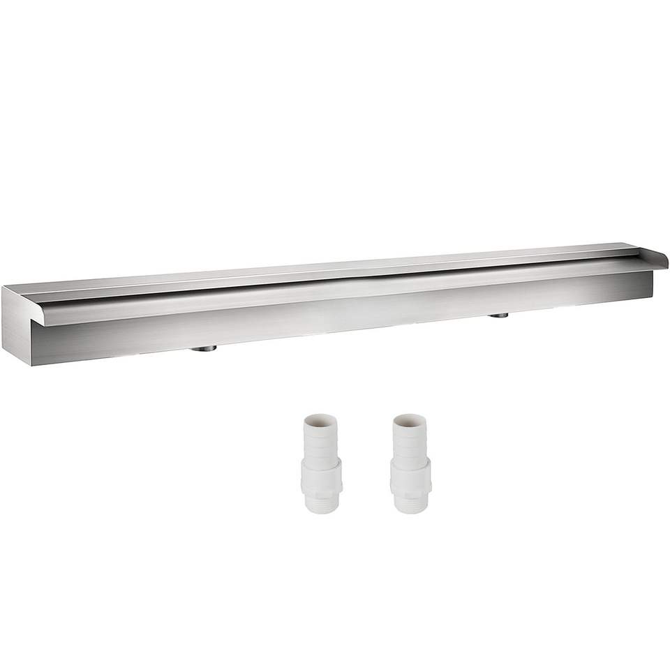 Fuente Rectangular de Acero Inoxidable para Jardín al Aire Libre con Aliviadero de Cascada y Conector de Tubería de 59,1 Pulgadas