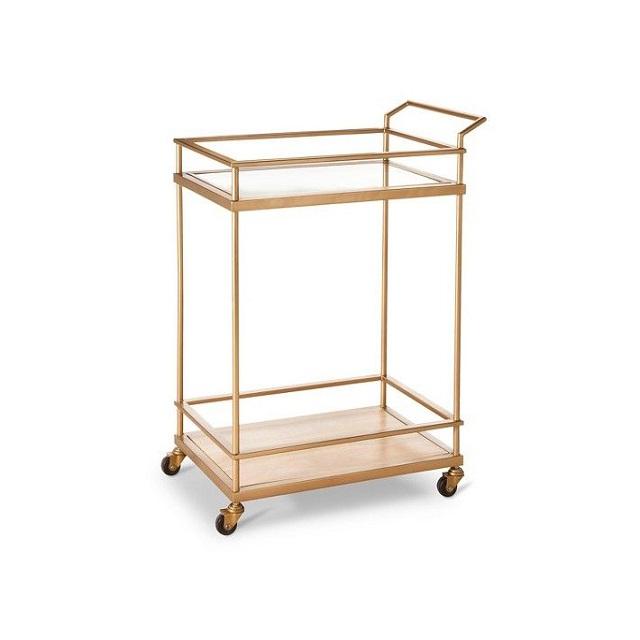 Carrito de Servicio de Diseño Tradicional en Acero Inoxidable Color Dorado para Hotel, Restaurante, Bodas, Sala de Estar, Cocina, Venta al por Mayor