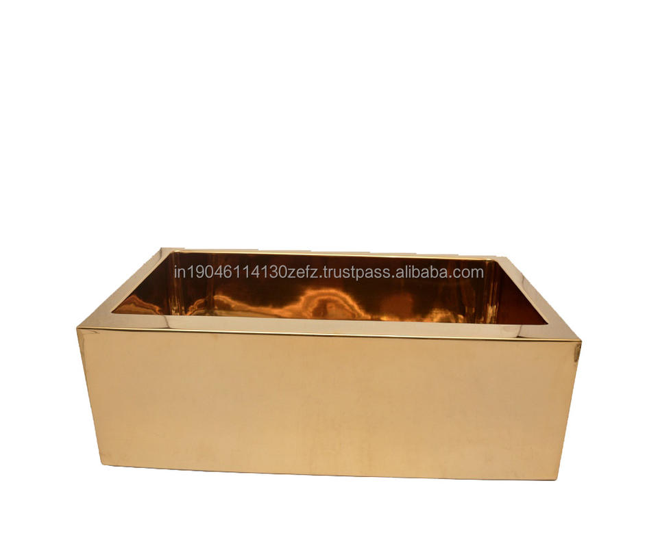 Fregaderos de acero inoxidable dorado PVD para cocina, fregaderos de granja lisos, fregaderos estándar americanos con acabado PVD brillante clásico de alta calidad