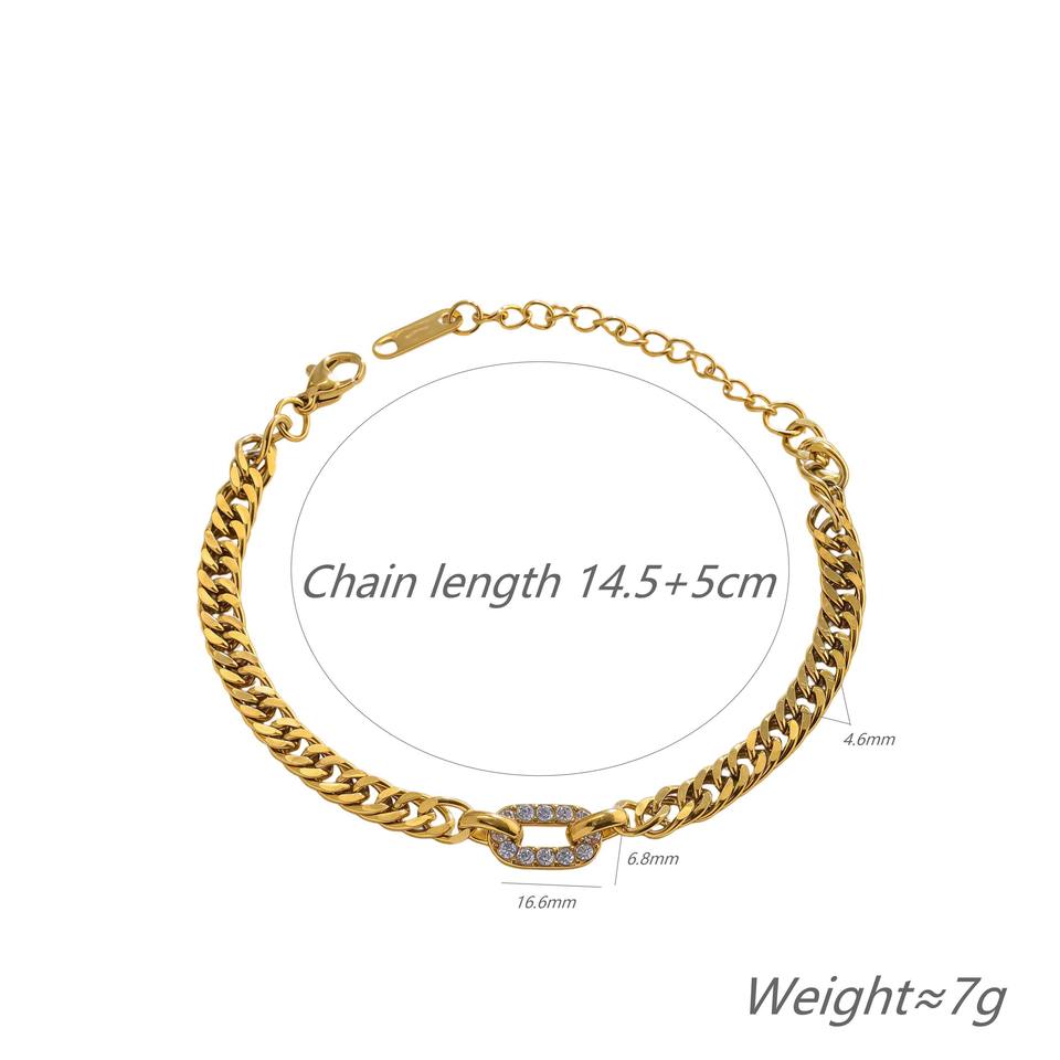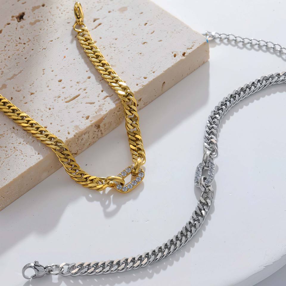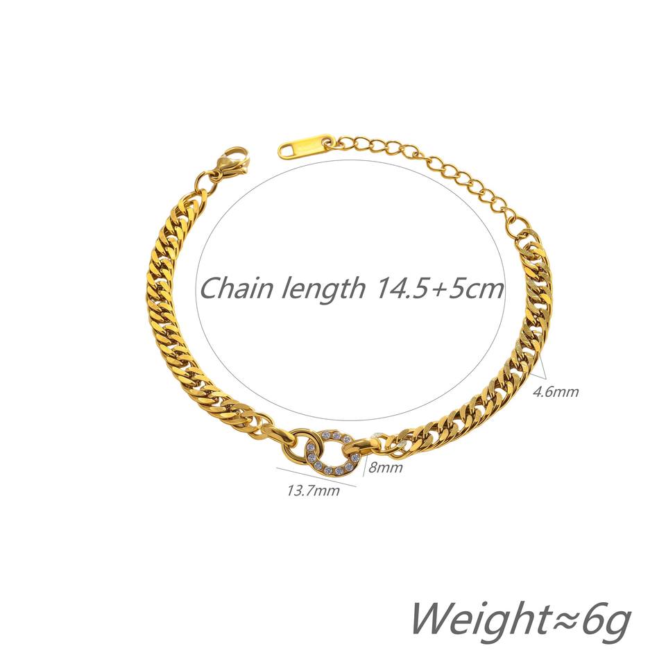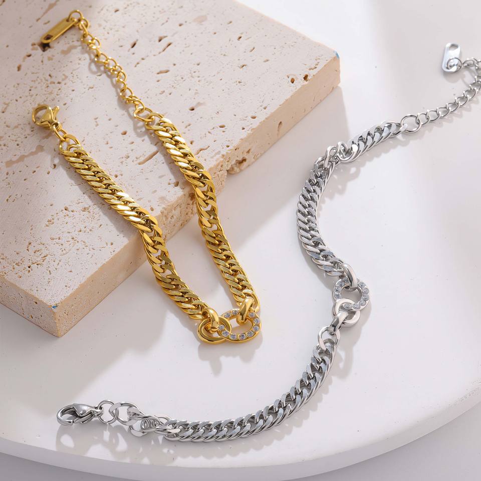 Brazaletes de Acero Inoxidable con Eslabones Cubanos en Oro/Plata, Brazalete Apilable con Corazón de Circonita, Cadena Gruesa, Estilo Vanguardista, Joyería Versátil para Uso Diario