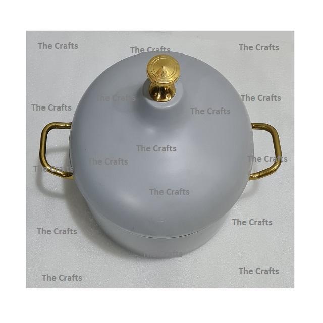 Stainless Steel Grey Color Casserole Dish With Brass Knobs And Handle Hotelware Serving Food Hot Pot At Lowest Prices
