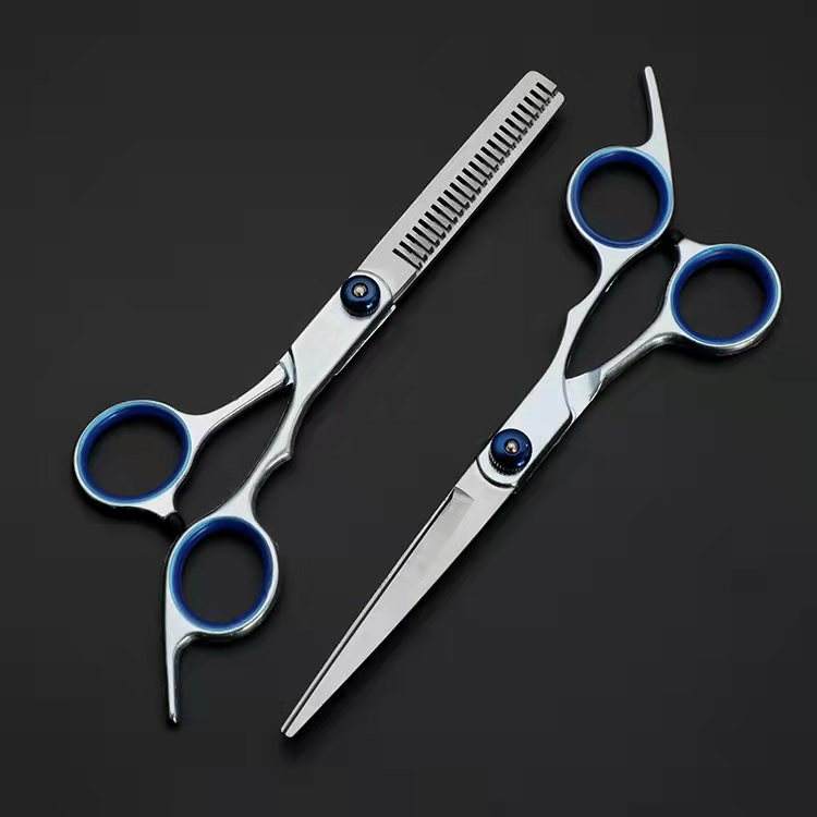 Juego de tijeras para el cabello de acero inoxidable, 2 piezas, tijeras planas para diestros, estilo de corte para uso doméstico, origen Zhangjiagang
