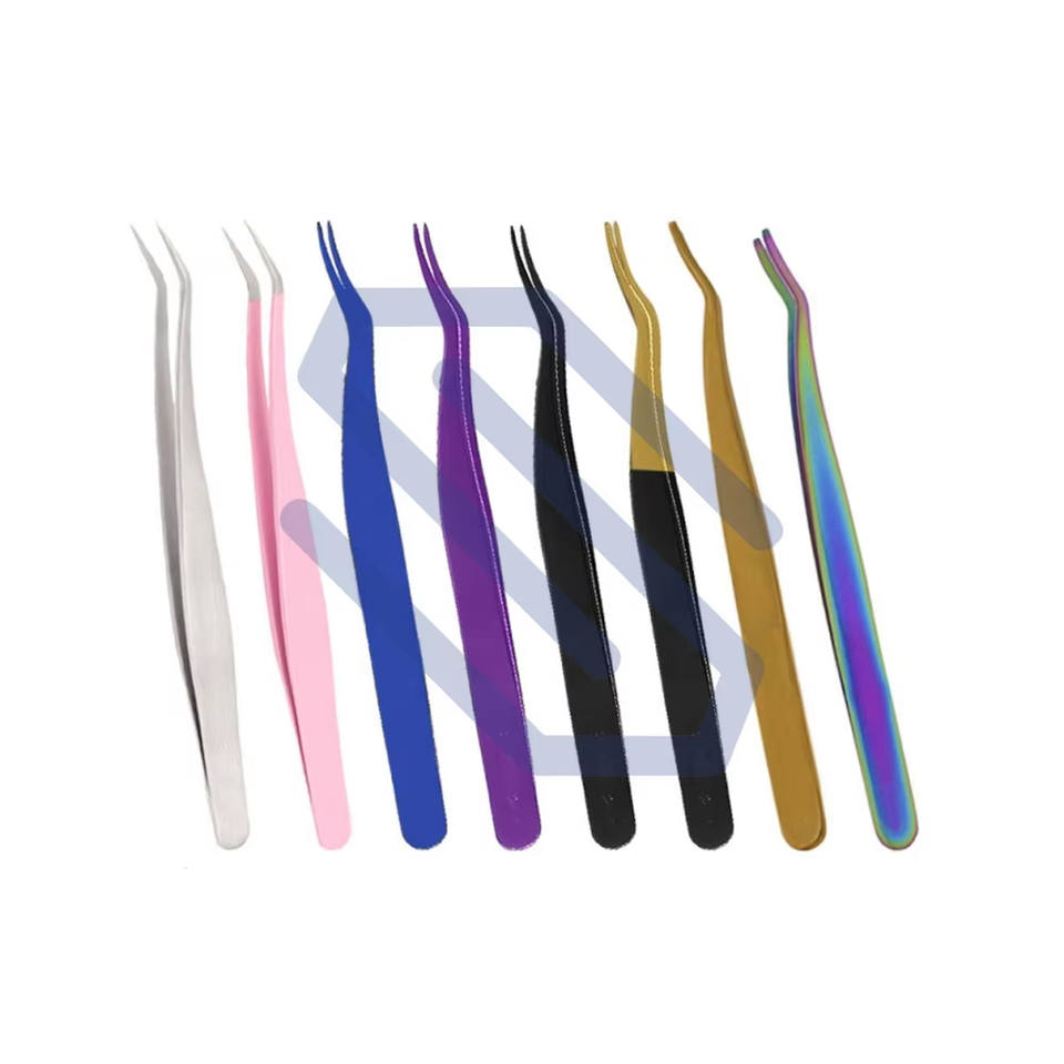 Pinzas para Pestañas Reutilizables Hechas a Mano de Acero Inoxidable, Pinzas para Cejas con Punta Redondeada, Herramientas de Aplicación