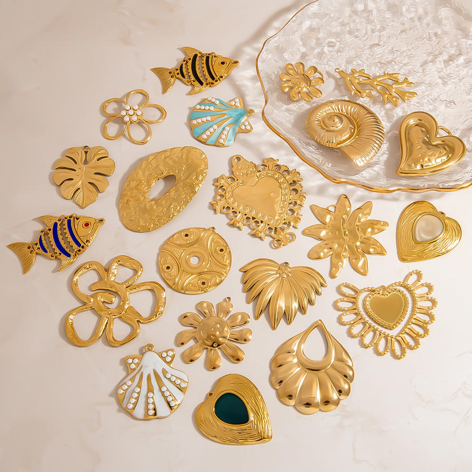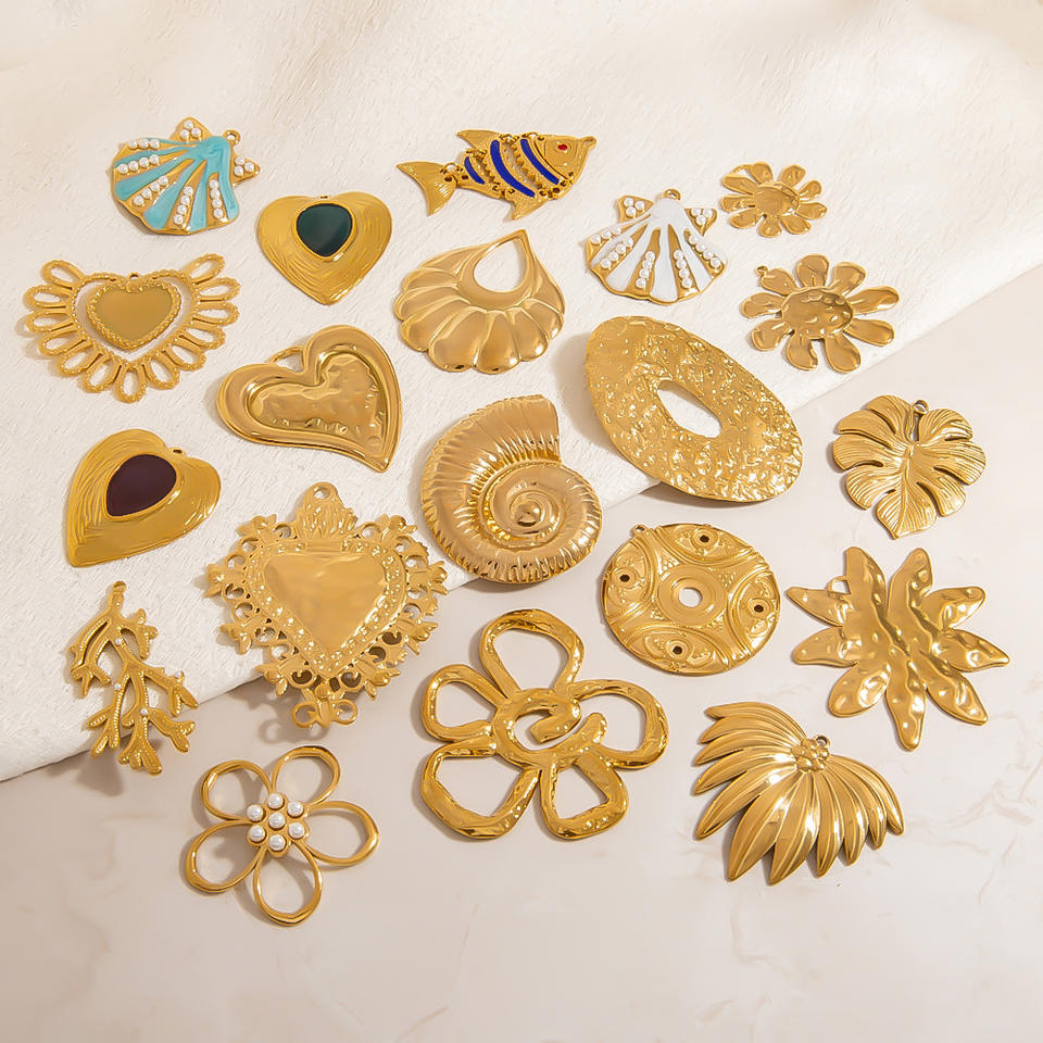 Dijes de Flores de Corazón de Acero Inoxidable para Mujer, Accesorios de Joyería DIY, Colgante Chapado en Oro de 18K, Suministros para Hacer Joyería