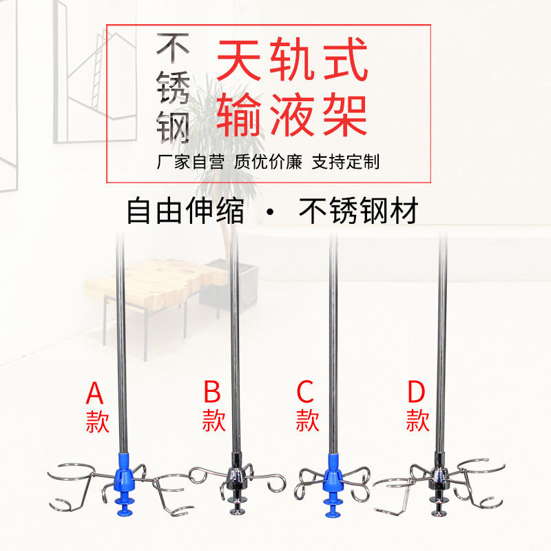 Soporte de Acero Inoxidable para Suero Intravenoso con Riel Ajustable, Gancho y Carro Deslizante para Uso Médico