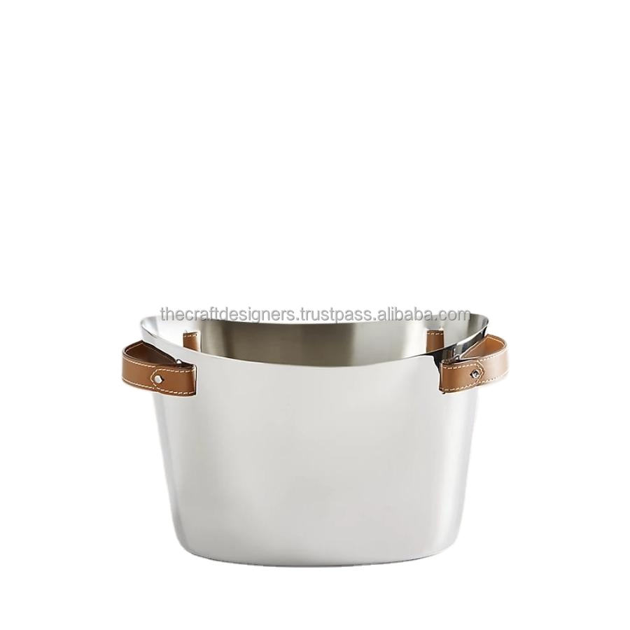 Cubo de hielo de acero inoxidable, bañera de almacenamiento de bebidas con asas de cuero, bañera enfriadora de vino y champán de Metal de alta calidad para fiestas