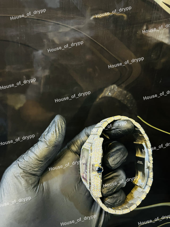 Reloj Automático de Acero Inoxidable con Diamantes Cultivados en Laboratorio VVS, Esfera Romana, Caja Cuadrada Estilo HipHop, Reloj de Moda para Hombre