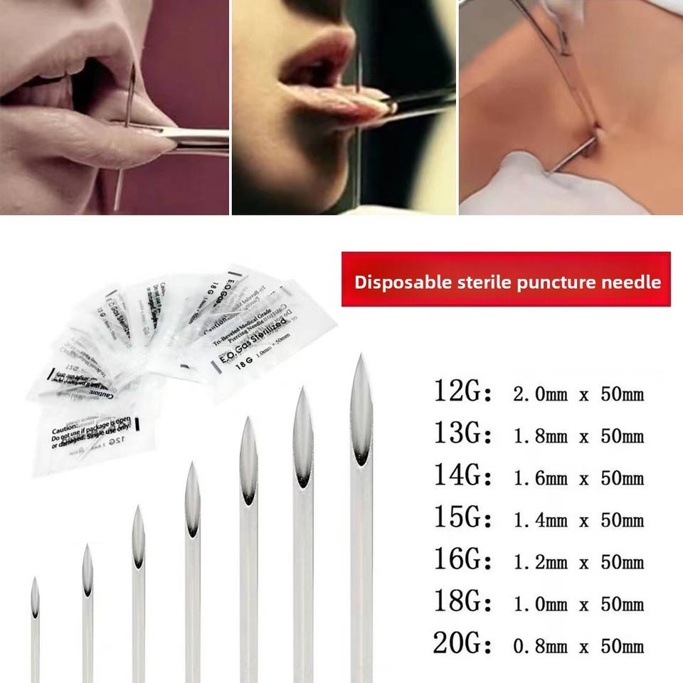 Agujas de Perforación Desechables de Acero Inoxidable, Empaquetadas Individualmente, Herramientas para Perforaciones Corporales y de Cejas, Disponibles al por Mayor
