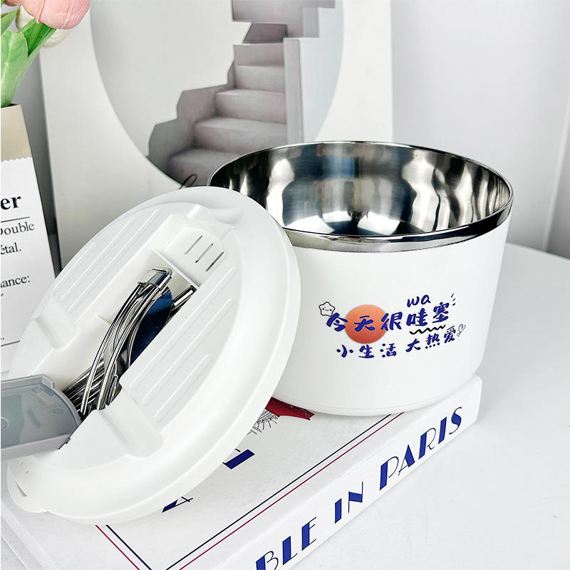Tazón de Fideos Instantáneos de Acero Inoxidable con Tapa, Gran Capacidad, Plegable, Portátil, para Sopa, Uso en Viajes, Redondo, con Diseño Animado