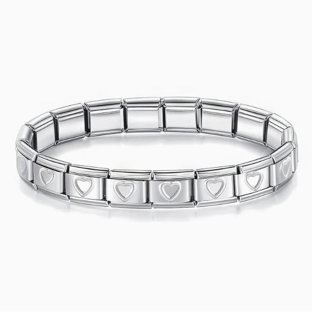 Pulsera Modular Italiana de Acero Inoxidable con Patrón de Corazón y Estrella, Pulsera de Moda Unisex, Joyería de Regalo