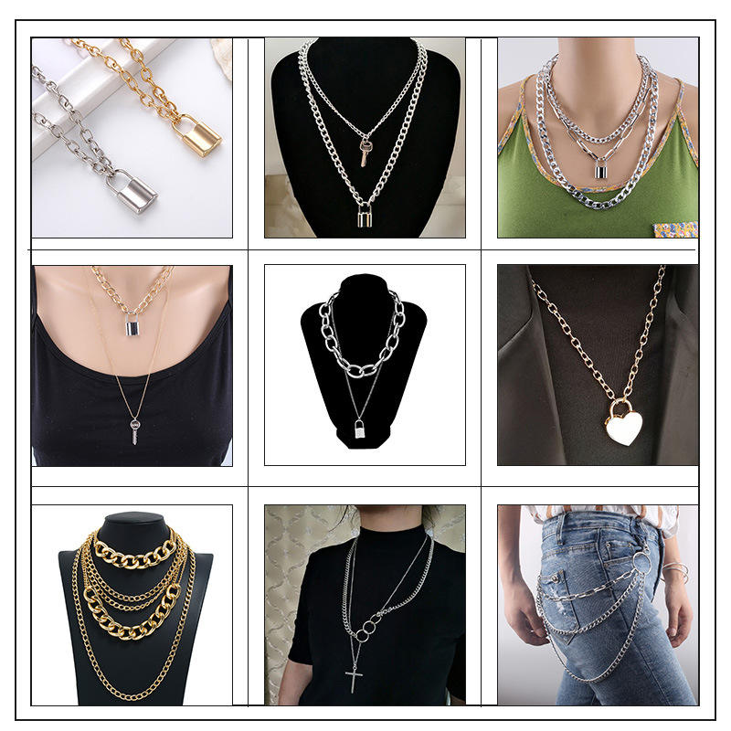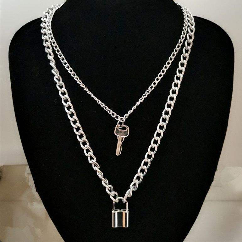 Collar con colgante de llave de acero inoxidable, cadena multicapa, cadena para suéter, para mujer, joyería de moda, origen Yiwu