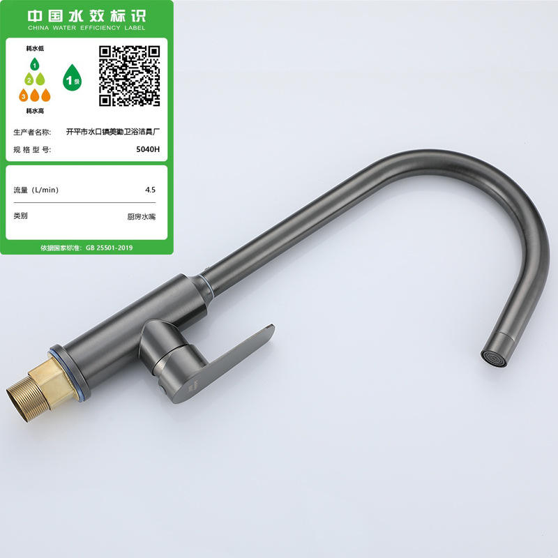 Grifo de Cocina de Acero Inoxidable, Monomando, Montaje en Encimera, Diseño Moderno, Válvula de Cerámica, Fácil Instalación