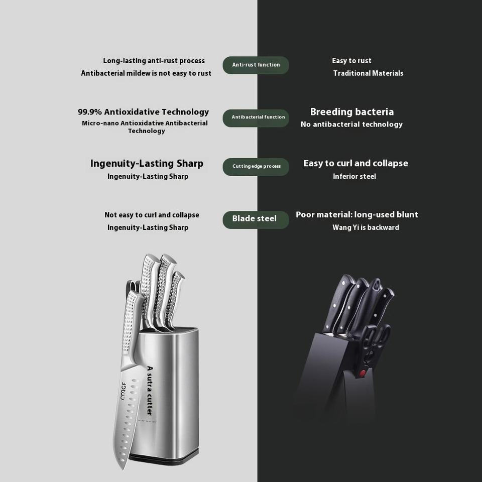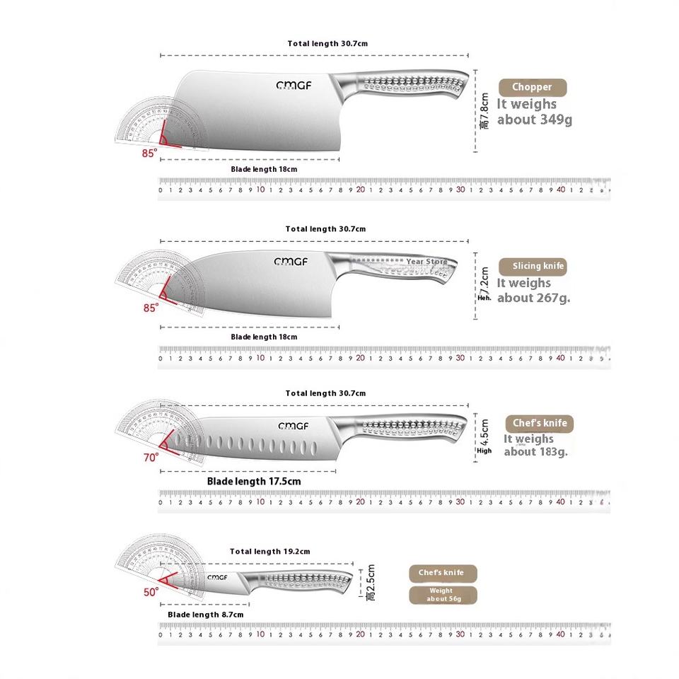 Juego de cuchillos de cocina de acero inoxidable con bloque, juego de cuchillos picadores domésticos para cortar verduras, carne, frutas