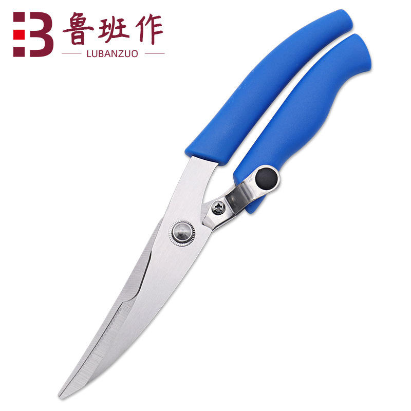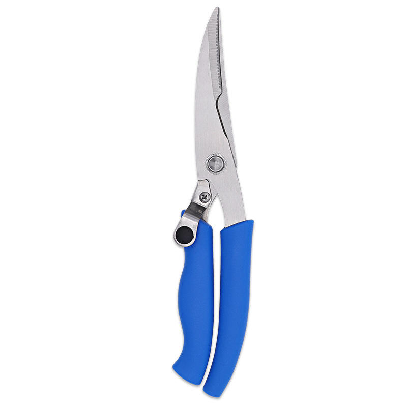 Stainless Steel Kitchen Scissors Heavy Duty Blue Handle For Home Use Chicken Bone Shears Elbow Shape