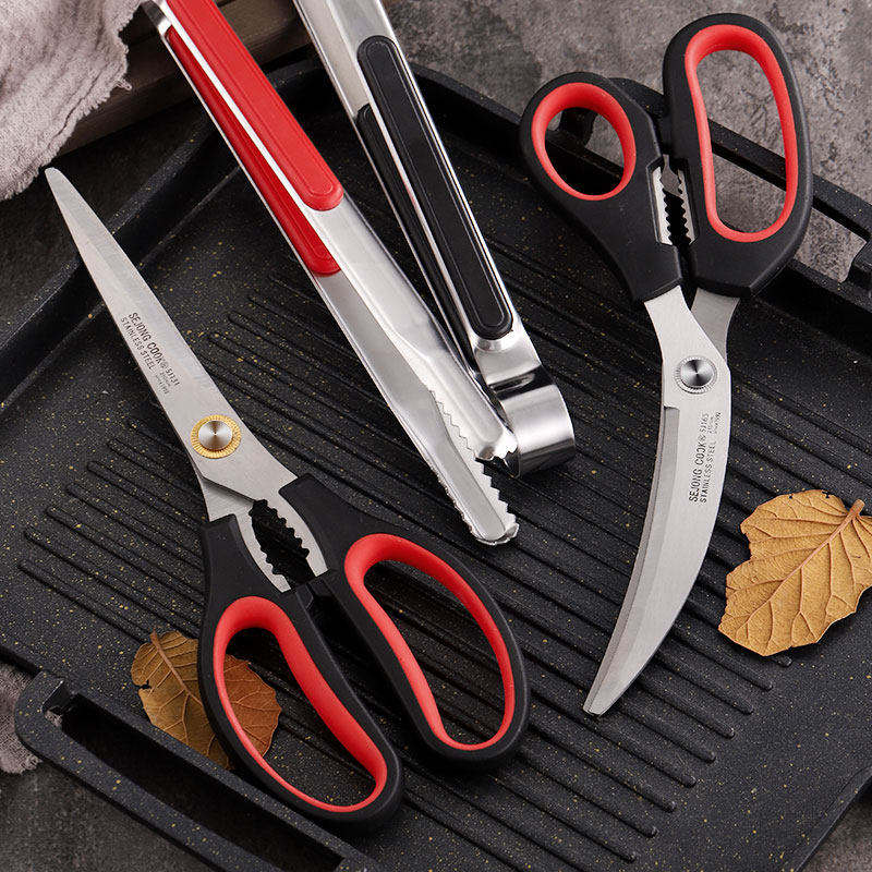Juego de tijeras de cocina de acero inoxidable, 2 piezas, para carne de pollo, herramienta de cocina multifuncional