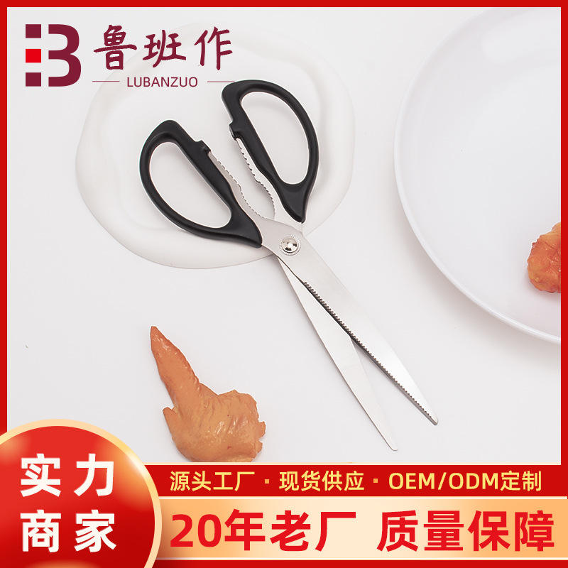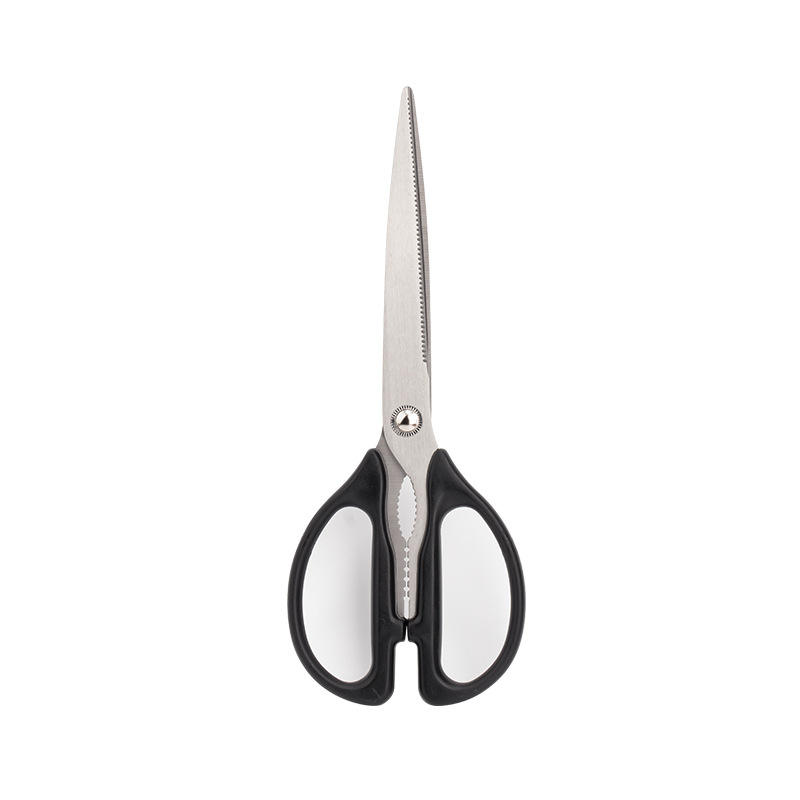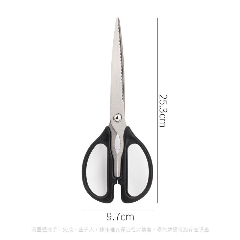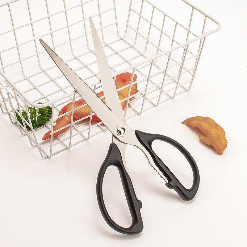 Tijeras de cocina de acero inoxidable con cabeza recta y mango negro, afiladas para cocinar en casa, barbacoa, cortar pollo y filetes
