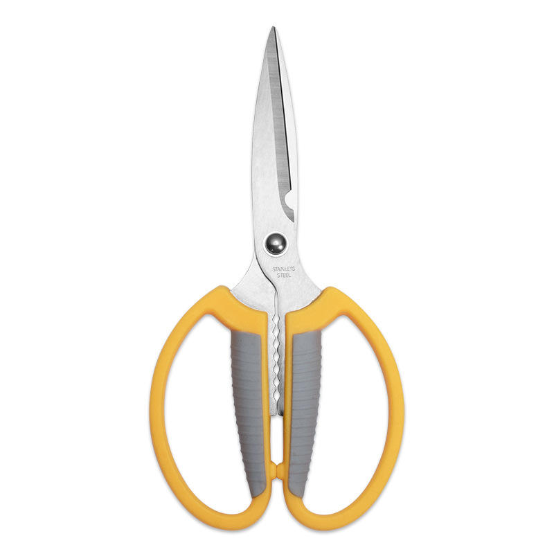 Stainless Steel Kitchen Scissors Yellowish Gray Non Slip Straight Head For Home Use