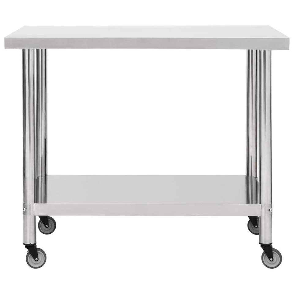 Mesa de trabajo de cocina de acero inoxidable con ruedas 31,5 "x 23,6" x 33,5 "para restaurantes