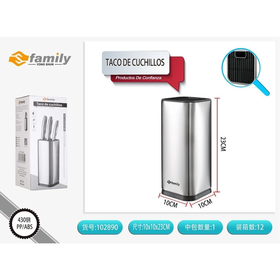 Bloque Cuchillo Acero Inoxidable 10x10x23 cm-Organizador Cubiertos
