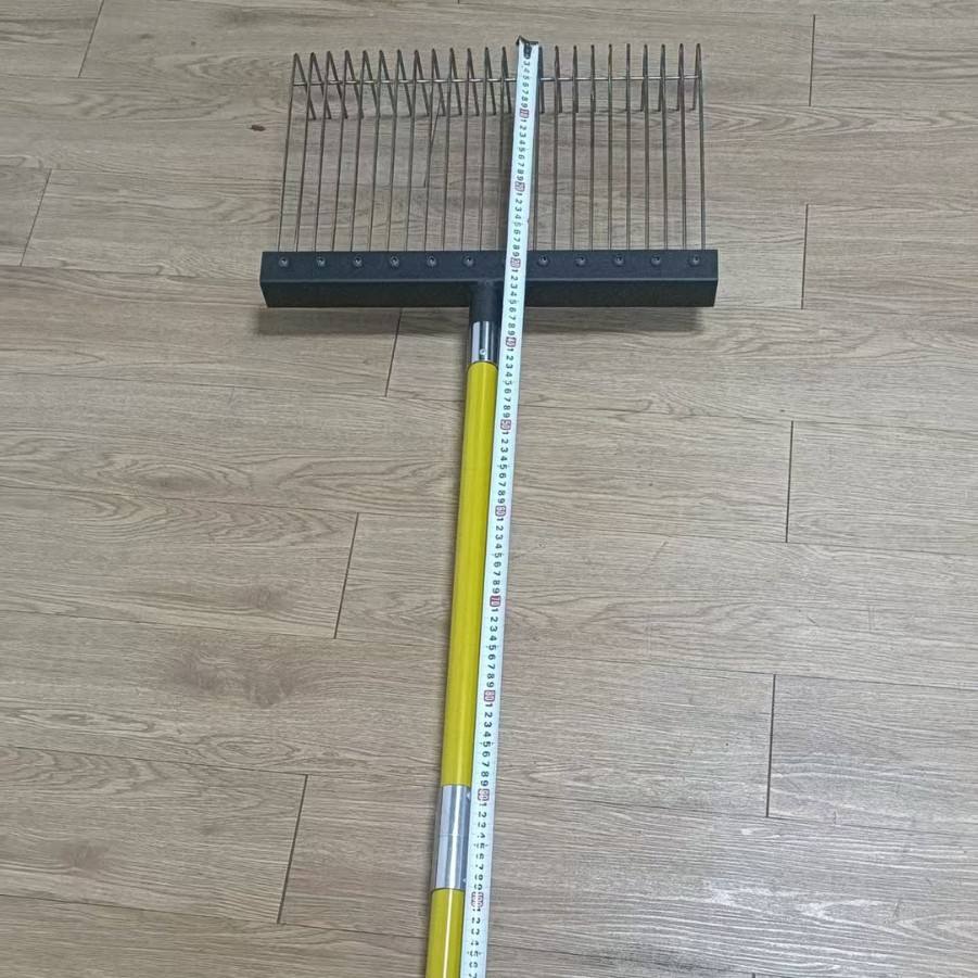 Rastrillo para hojas de acero inoxidable con mango telescópico amarillo para jardinería y trabajos en el jardín