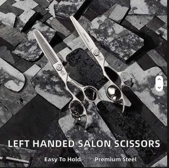 Juego de Tijeras de Acero Inoxidable para Zurdos, Mango Ergonómico, Tijeras de Entresacar Rectas, Profesionales para Peluquería