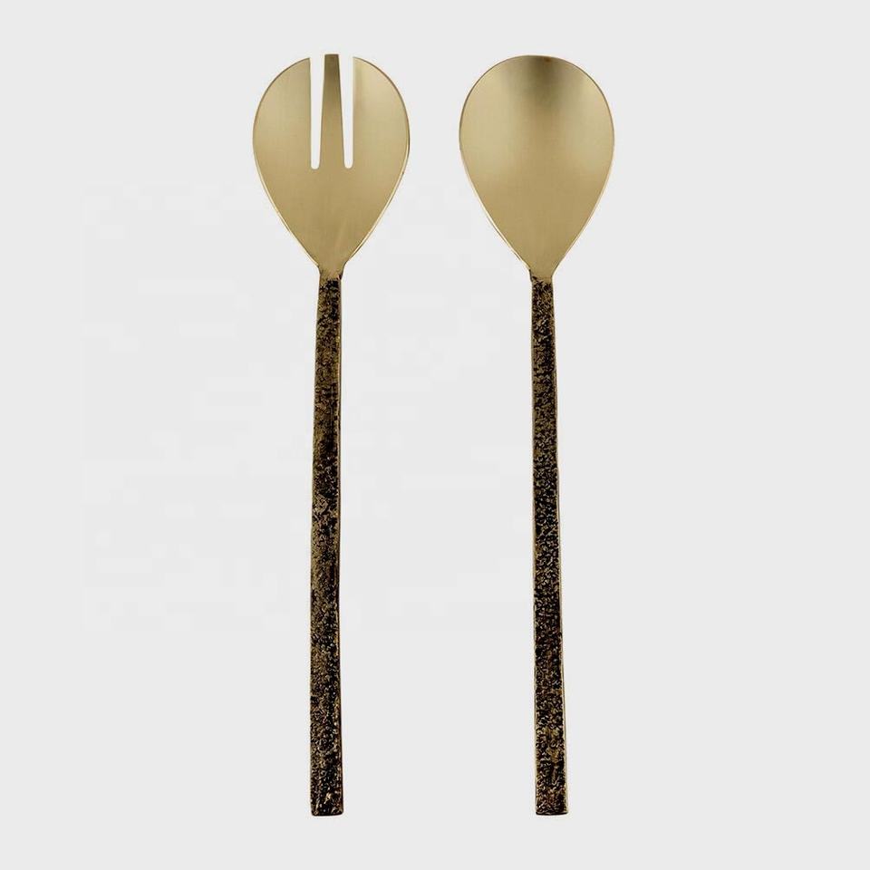 Stainless Steel Long Design Handmade Handle Cutlery Set Royal Stainless Steel Salad Server Mirror Polished