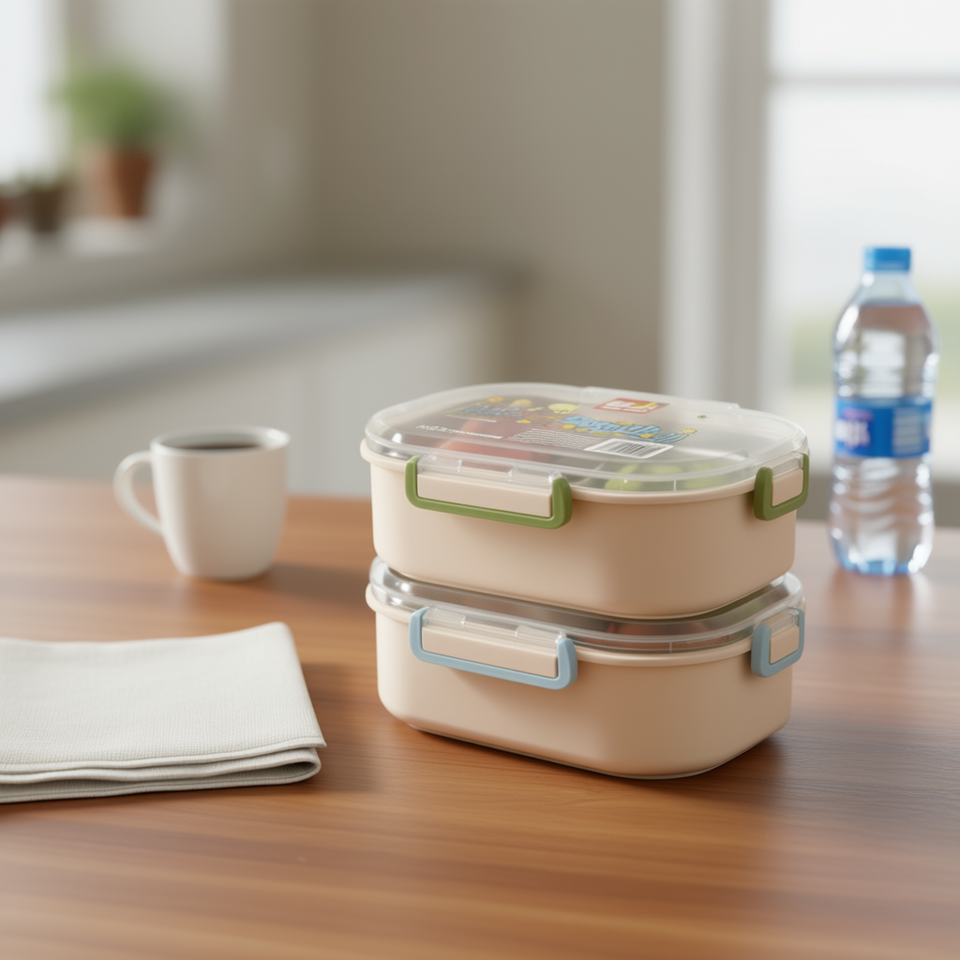 Lonchera de Acero Inoxidable de 1-3L, 2 Compartimentos con Tapa, Apilable, Libre de BPA, Rectangular, Tamaño M