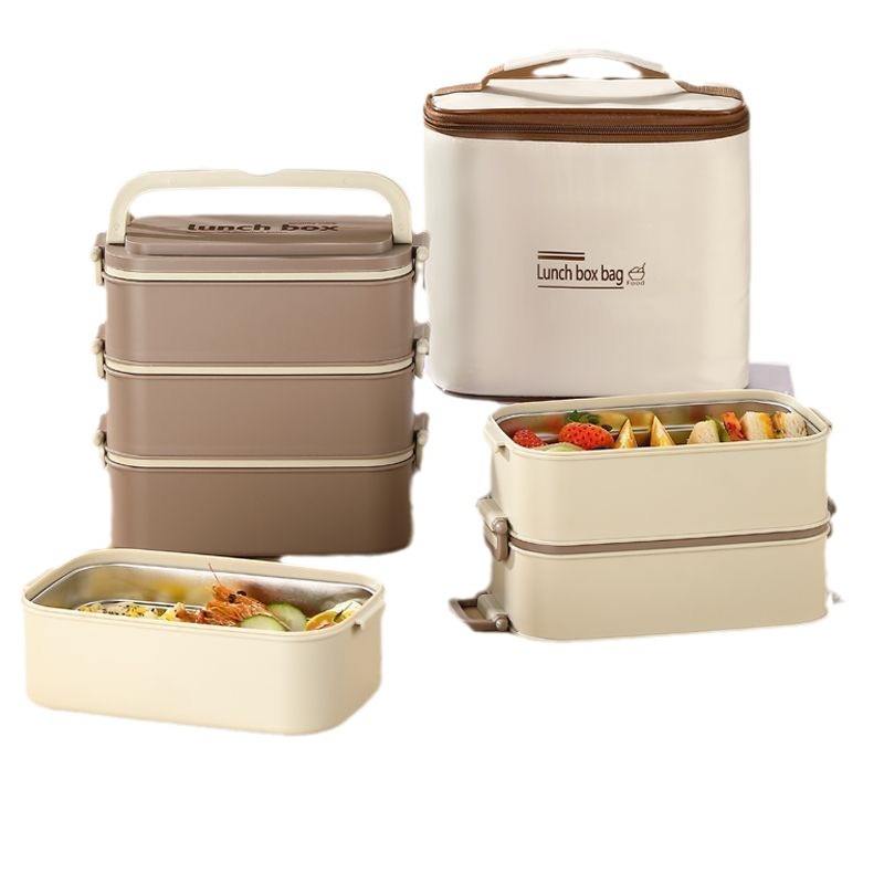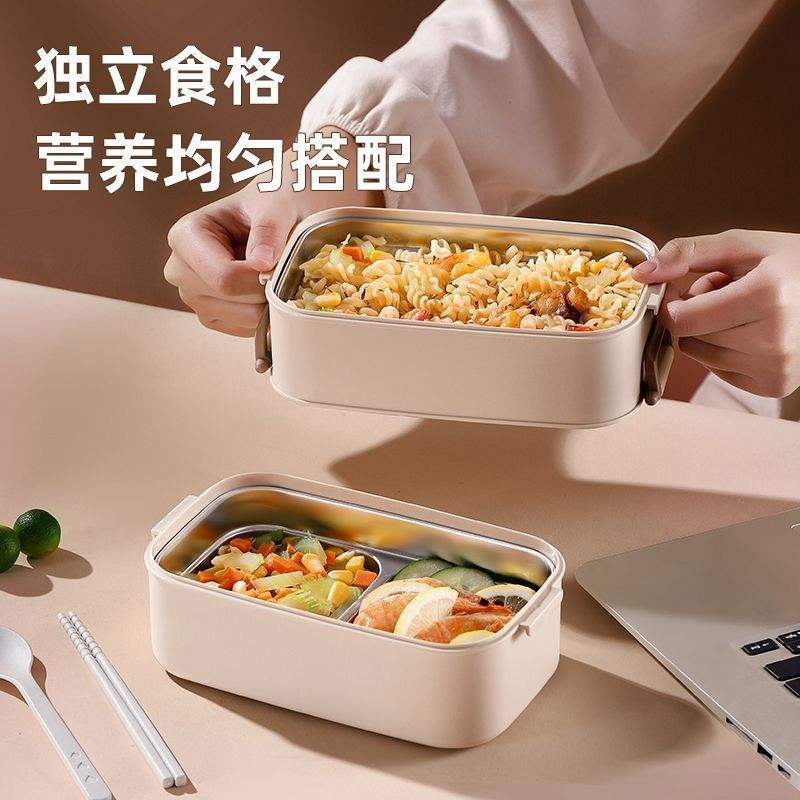 Lonchera de Acero Inoxidable Multicapa, Portátil, Apta para Microondas, para Oficina y Estudiantes, Rectangular, Color Sólido