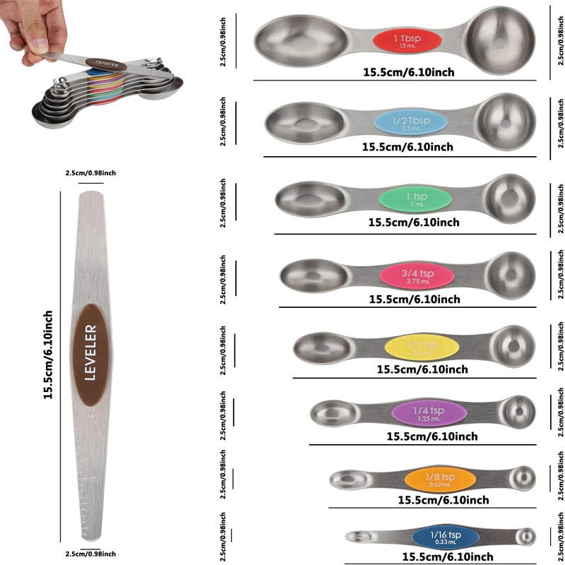 Juego de Cucharas Medidoras Magnéticas de Acero Inoxidable con Imanes Potentes, Utensilios de Cocina de Metal Resistentes para Hornear y Cocinar, Juego de 8