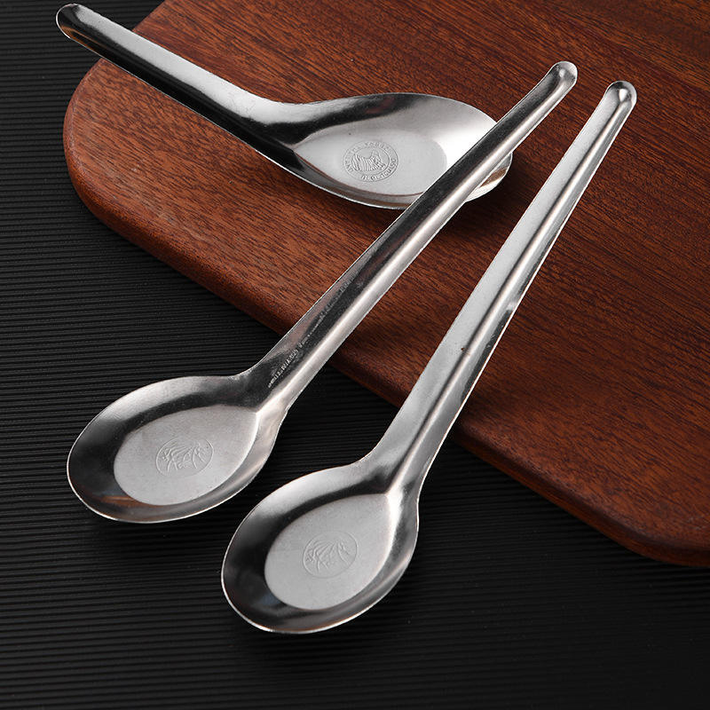 Cuchara magnética de acero inoxidable con base plana para servir, para uso doméstico, en restaurantes y para estudiantes.