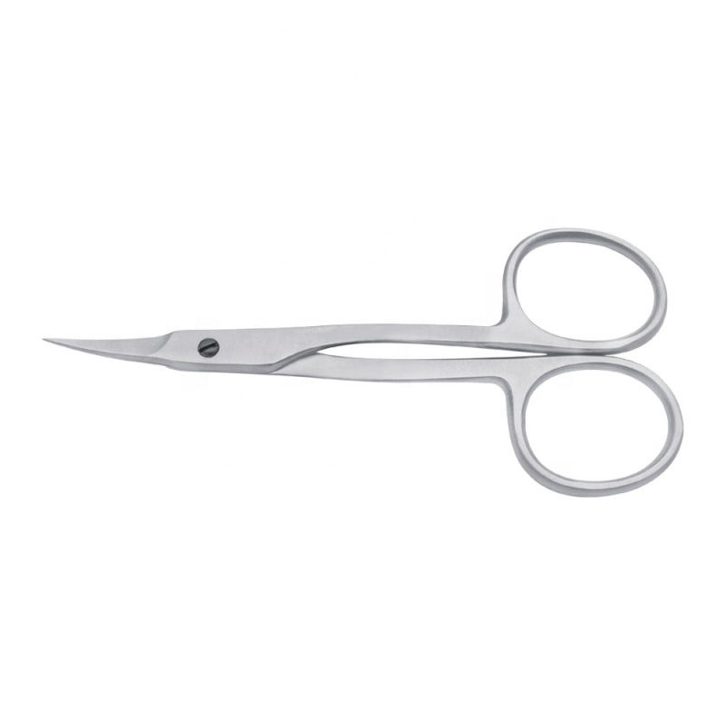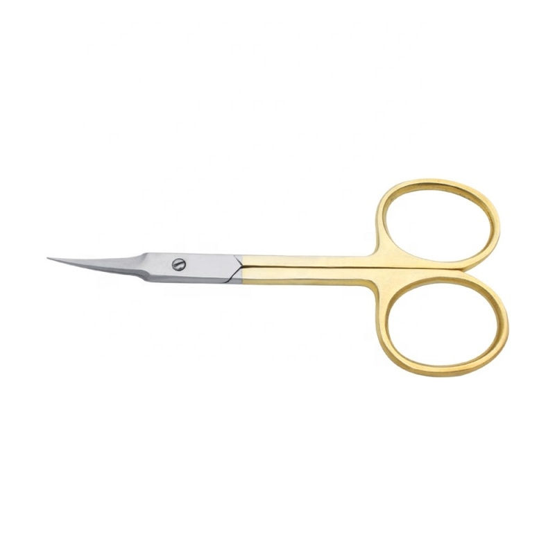 Tijeras de manicura y pedicura de acero inoxidable con punta de curva con resorte recubierta de papel de color dorado, afilada tijera a bajo precio