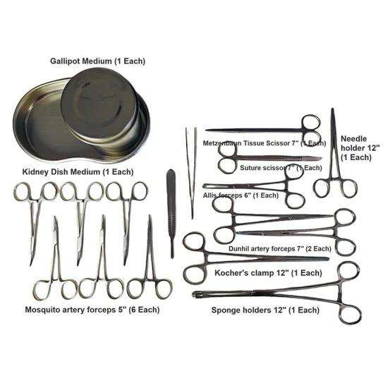 Juego de Instrumentos Quirúrgicos Manuales de Acero Inoxidable con Certificación CE y Esterilización a Alta Temperatura
