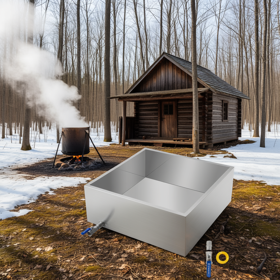 Olla de Acero Inoxidable para Hervir Jarabe de Arce de 24x24x9.5 Pulgadas con Válvula, Olla Evaporadora para la Elaboración de Jarabe de Arce