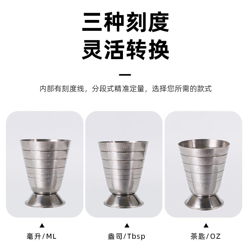 Taza medidora de acero inoxidable de 75 ml, jigger graduado para cócteles, para uso en bares
