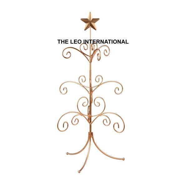 Soporte de exhibición navideño de acero inoxidable con forma de árbol, pulido brillante, para decoración de fiestas navideñas en el hogar.