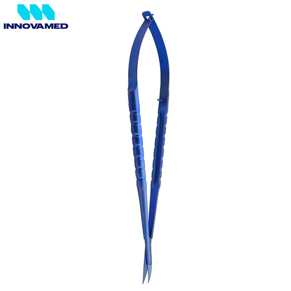 Micro tijeras de resorte de acero inoxidable Color titanio azul con hoja curva, diseño de resorte de 6,34 pulgadas para uso de precisión