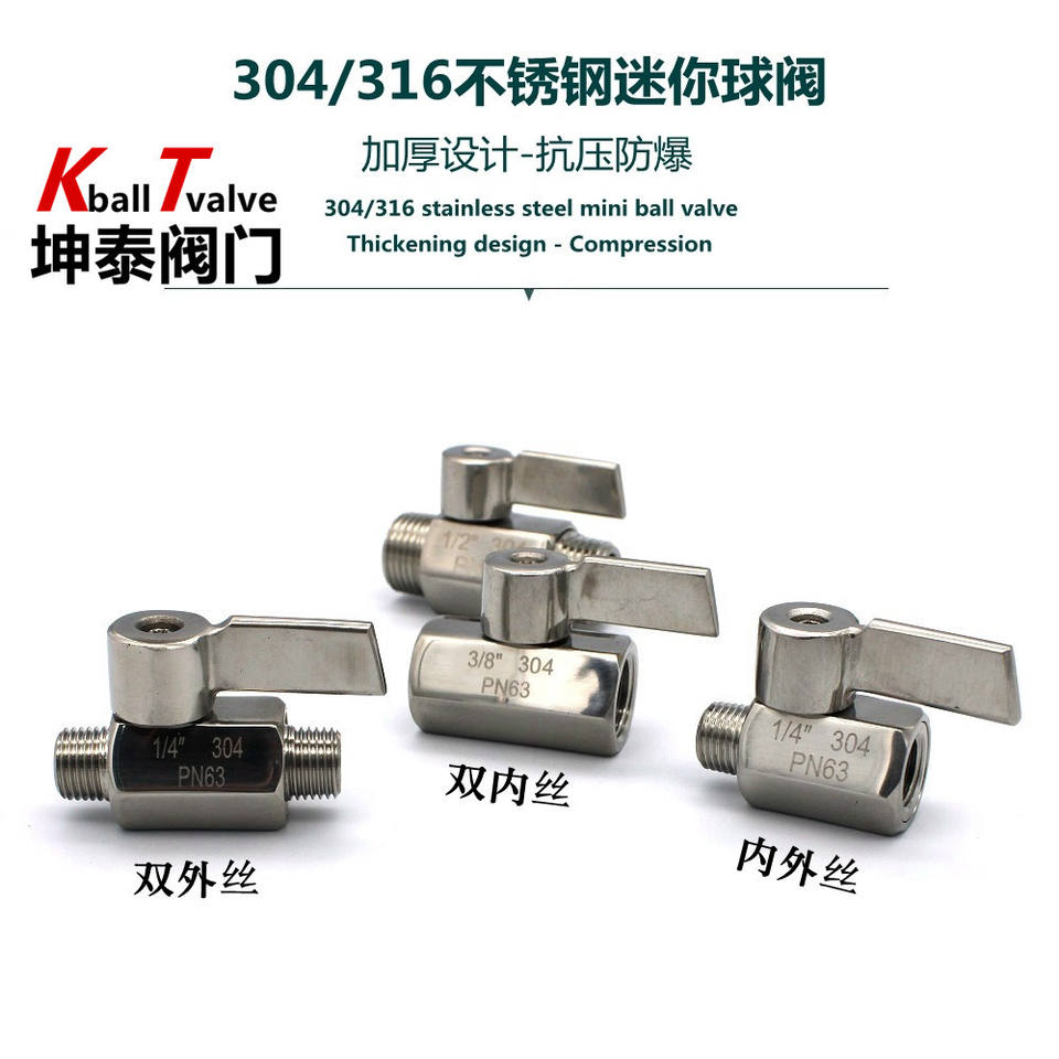 Mini válvula de bola de acero inoxidable de 1/2 pulgada Pn63 para agua y medios químicos