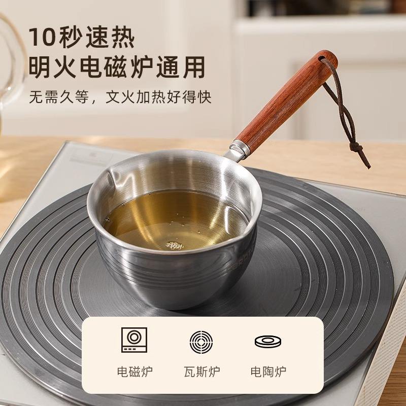 Mini olla de acero inoxidable con mango de madera, resistente al calor, para calentar aceite, verter leche, capacidad de 200 ml