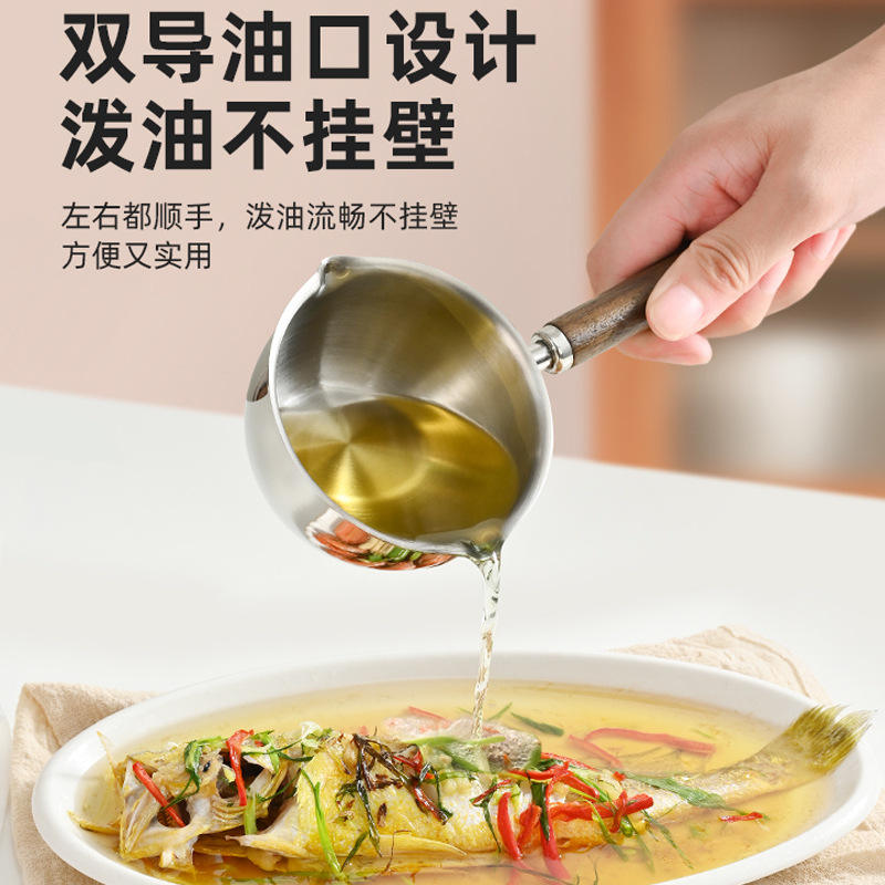 Sartén para verter aceite con mango de madera extra grueso de 150 ml [acero inoxidable 304]