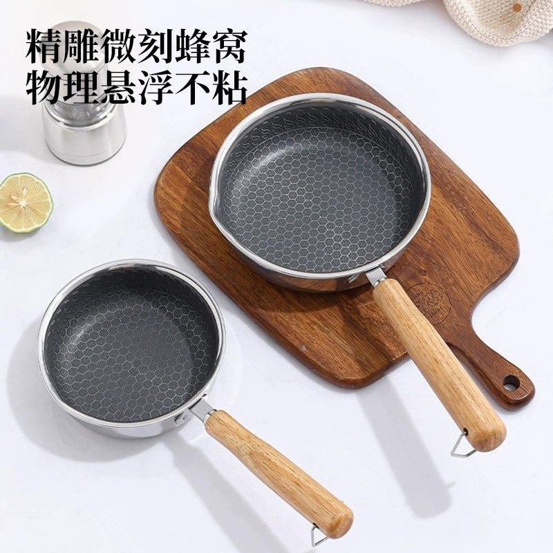 Stainless Steel Mini Pan Nonstick Round With Wooden Handle For Oil Drizzling And Heating