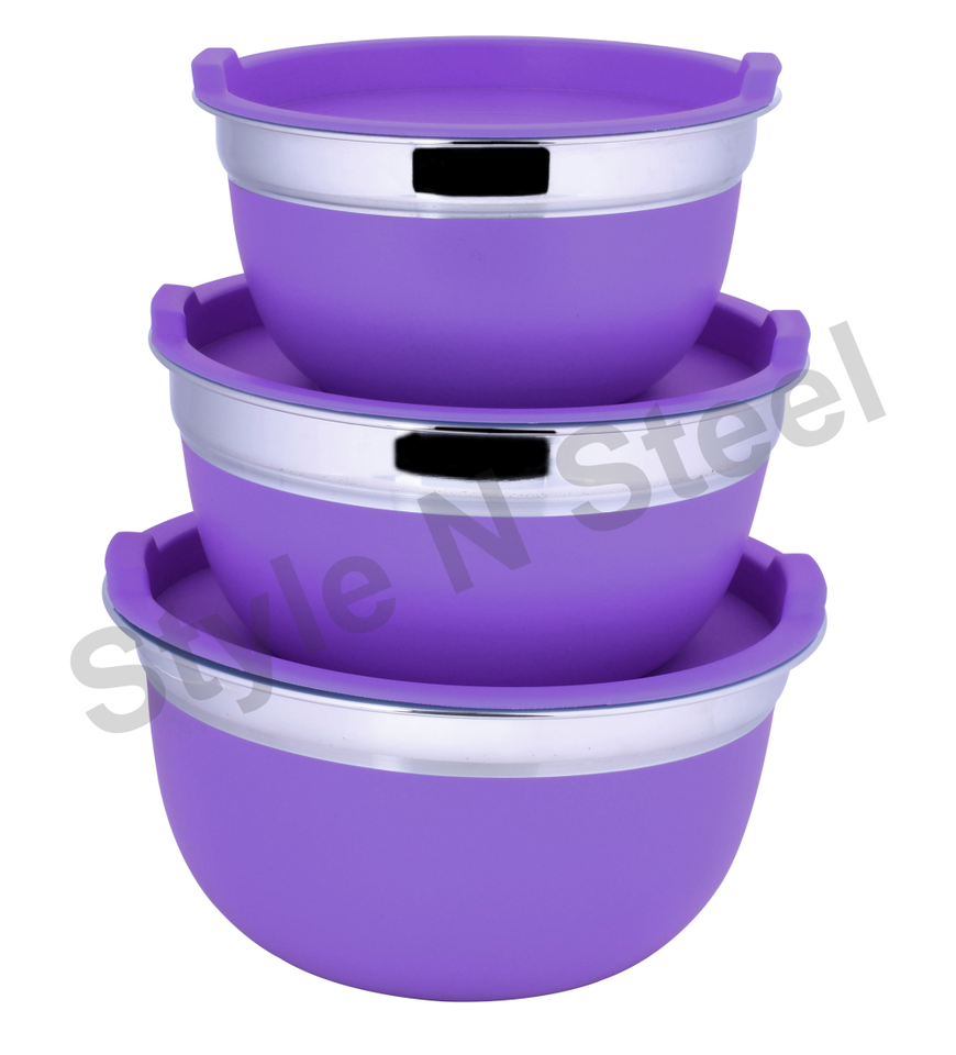 Cuenco de mezcla de acero inoxidable con tapa Cuencos de mezcla de metal seguros para microondas Color diferente