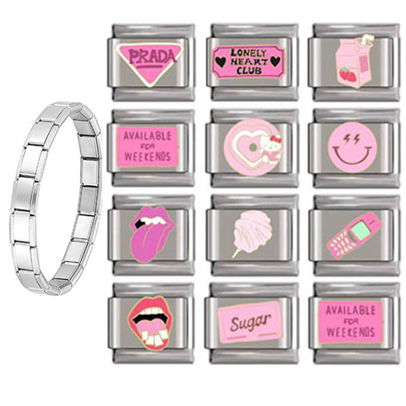 Stainless Steel Modular Bracelet With Pink Theme Charms Unisex DIY Jewelry Fashion Accessory