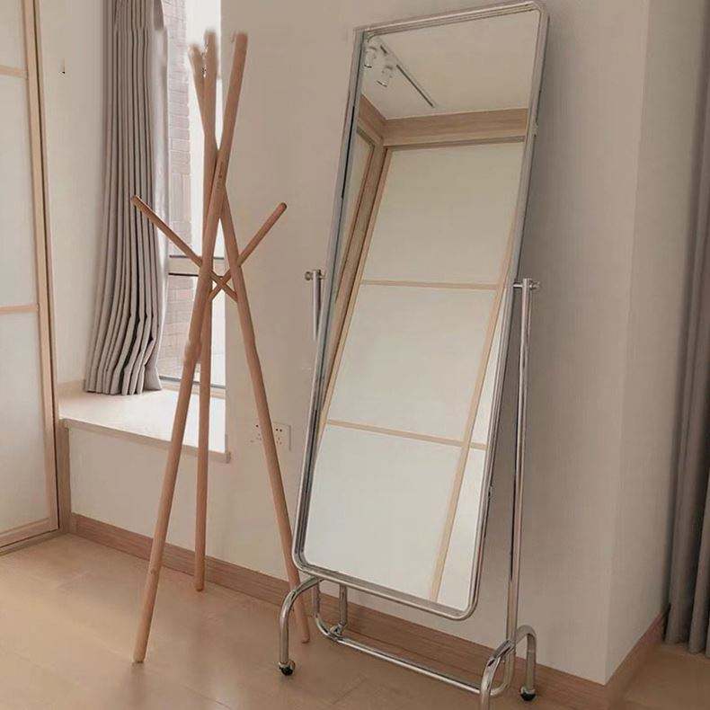Espejo de tocador de acero inoxidable alto y fino personalizado de tendencia 2025, suelo móvil para sala de estar, tienda de ropa, muebles decorativos