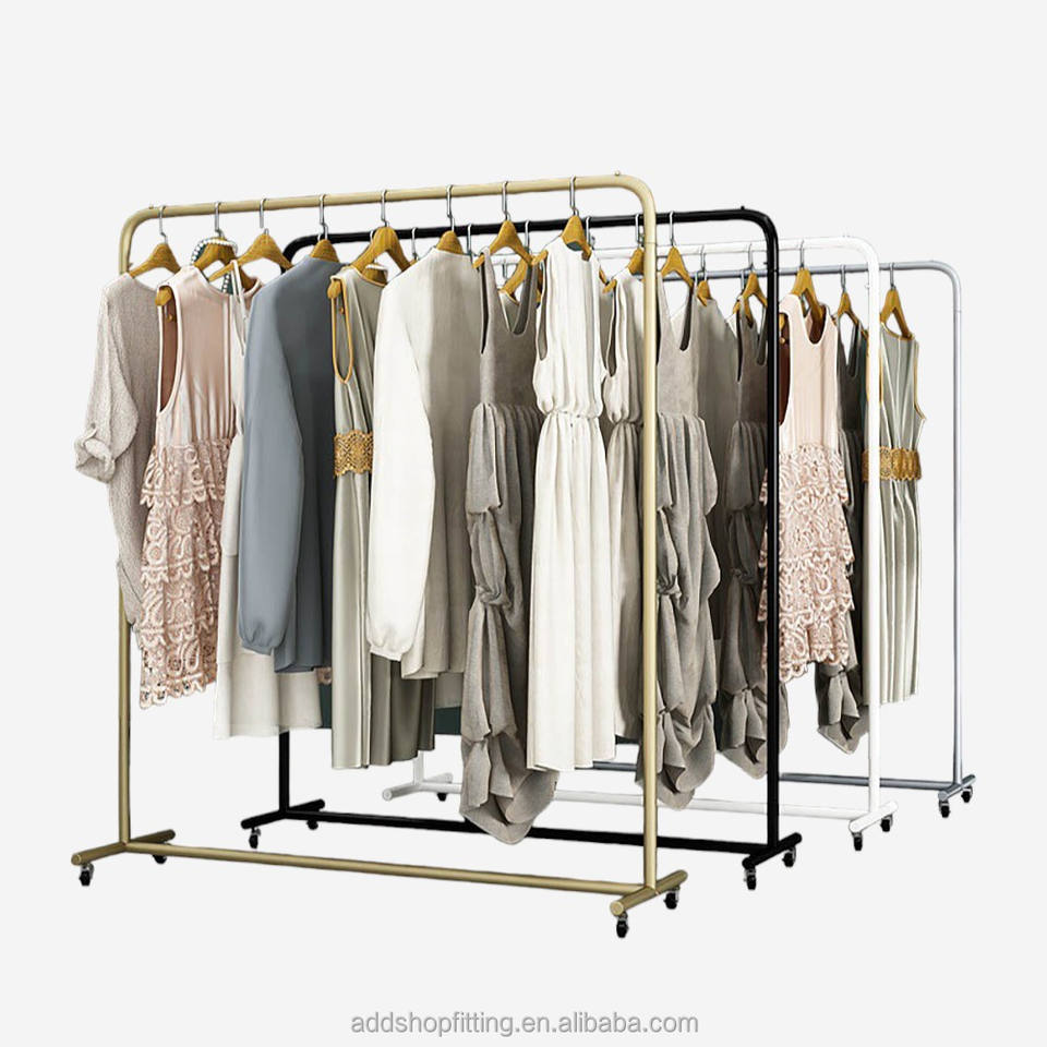 Perchero Móvil de Acero Inoxidable con Ruedas para Exhibición de Ropa