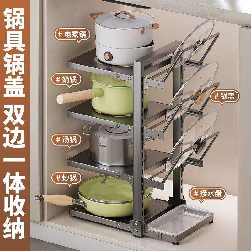 Estante de Cocina Multicapa de Acero Inoxidable para Encimera, Armario, Fregadero, Organizador de Platos y Tazones, Tamaño L, Diseño Cuadrado