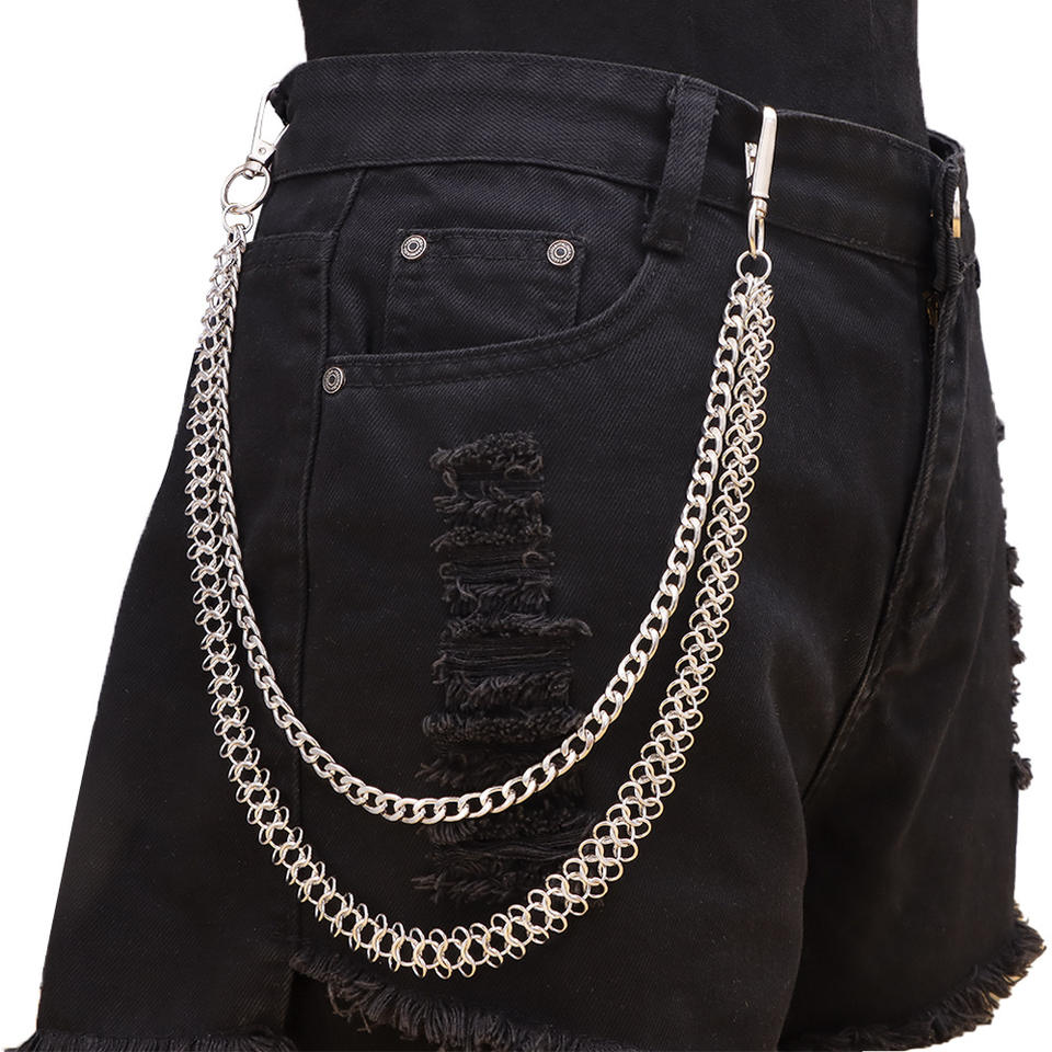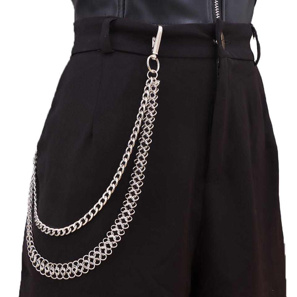 Cadena de cintura de acero inoxidable de varias capas, estilo punk, para mezclilla, accesorio de hip hop, unisex para adultos